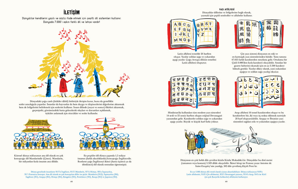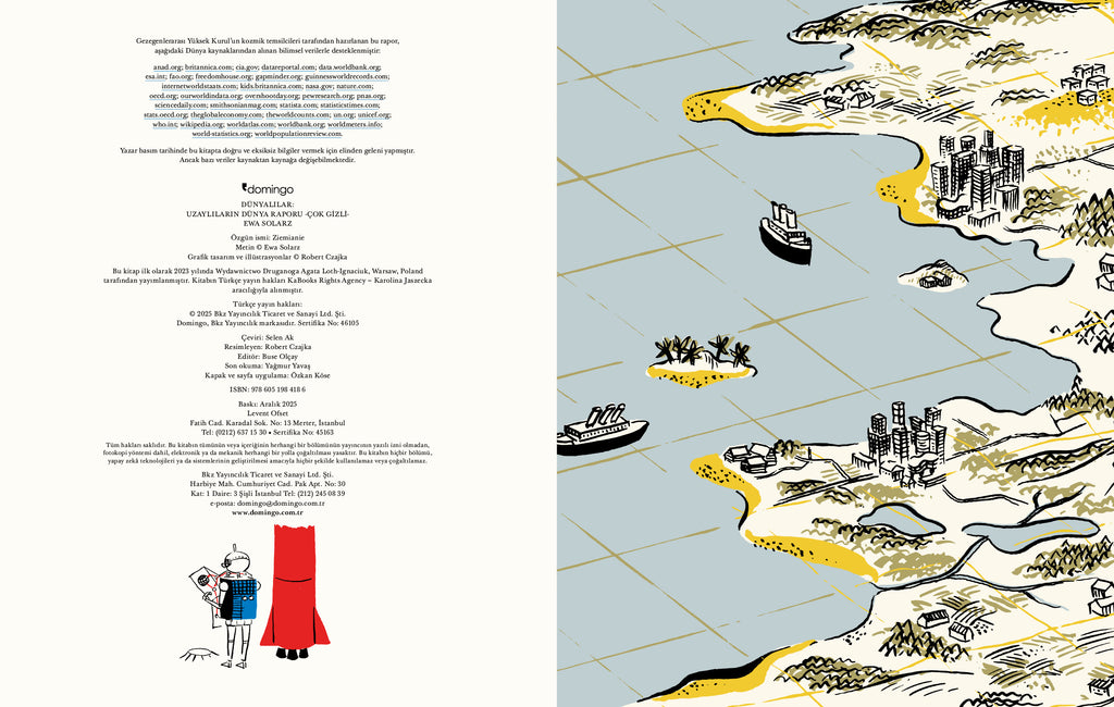 2025 Prix Sorcières adayı Dünyalılar: Uzaylıların Dünya Raporu -Çok Gizli- eğlenceli üslubu ve göz alıcı çizimleriyle sizi koltuğunuzdan kıpırdatmadan dünya turuna çıkarıyor.