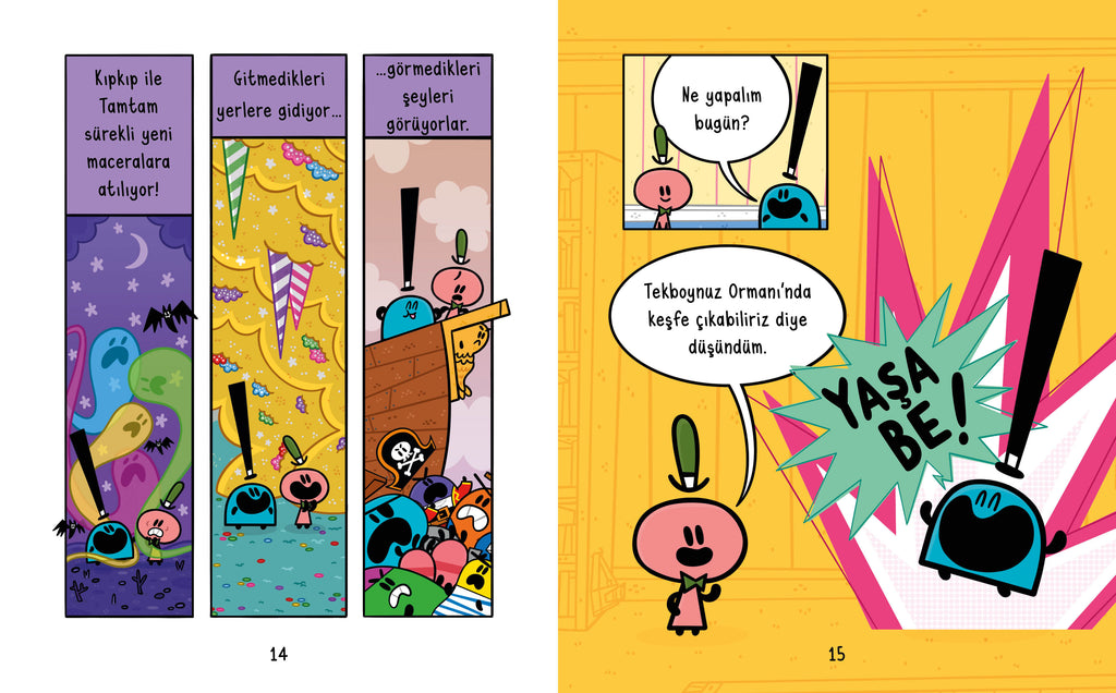 Freni patlamış dondurma arabası, gökten yağan milyonlarca pasta ve daha bir sürü karmaşa… Kıpkıp ile Tamtam’ın saksıyı çalıştırıp Cıvıltoynak’ı sakinleştirecek bir yol bulmaları lazım. HEM DE HEMEN!