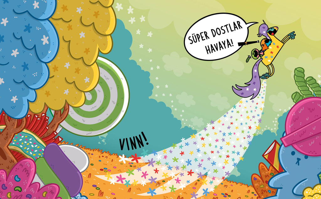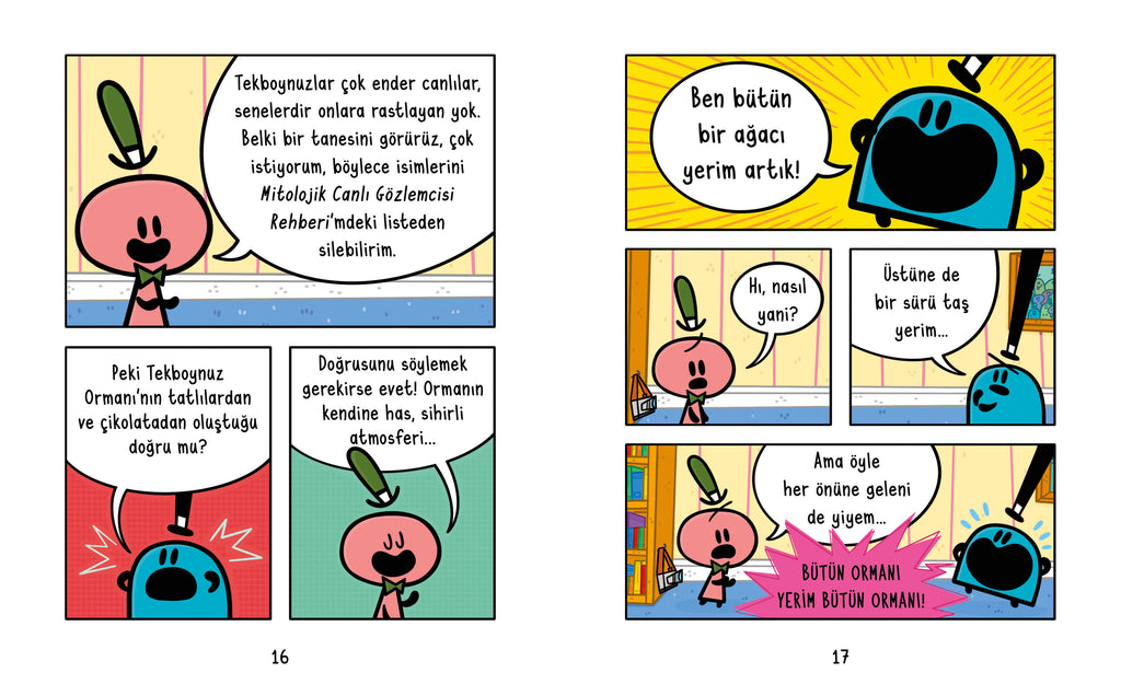 Kıpkıp ile Tamtam’ın bugünkü rotası TEKBOYNUZ ORMANI! Marşmelov tarlasında kendilerini azıcık (!) kaybedince ikilinin başı derde giriyor. Neyse ki tekboynuz Cıvıltoynak var. Onun da ikiliye katılmasıyla ŞAHANE bir fikir geliyor akıllarına: süper kahraman üçlüsü olmak! Ama Cıvıltoynak heyecanlanıp kendini kahramanlığa FAZLA kaptırınca işler kontrolden çıkıyor!