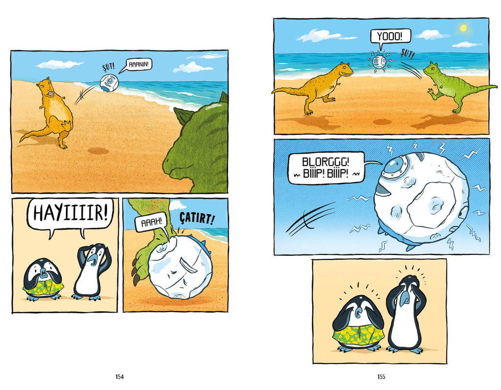 Zaman yolcusu penguenler Pablo ve Laklak ile dinozorlar zamanına doğru beklenmedik bir maceraya atılın. Aksiyonun hiç bitmediği bu komik mi komik grafik roman, Köpek Adam ve Olay Adam hayranları için mükemmel bir seçim.